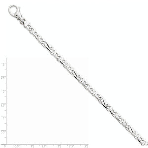 Classic appeal with a modern design, this fancy Figaro style chain bracelet created from rhodium-plated 14k white gold is approximately 5.75mm in width by 8-inches in length, closes with a fancy lobster clasp and features polished solid links.