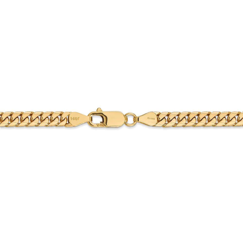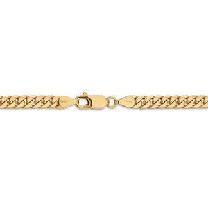 This 5mm width, Miami Cuban or domed curb chain of 14k yellow gold features a solid link design that shines beautifully thanks to the hand-polished finish. It includes a strong lobster-claw clasp to provide a secure, worry-free fit. 7 inches in length.