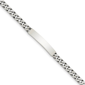 Identify yourself, remember a special person or even display a special message with this antiqued 8-inch women's ID bracelet. It is crafted from solid sterling silver and features a 32mm long x 5mm width ID plate. It is, of course, suitable for engraving. The 5mm width curb chain secures with a lobster claw clasp.