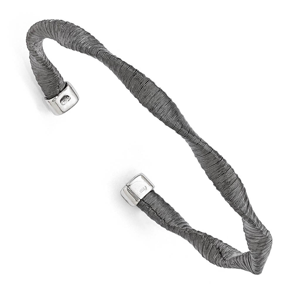 5mm Black Rhodium Plated Sterling Silver Twisted Cuff Bracelet - Black Bow Jewelry Company
