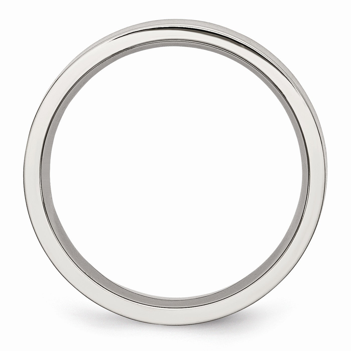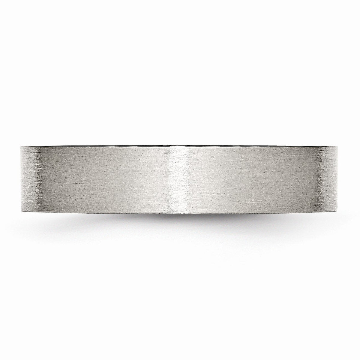 A tried and true favorite style with a contemporary flat profile designed from stainless steel with a brushed finish. This 5mm wide band also features a comfort fit interior or a rounded inside shank so it will slide easily and rest comfortably on the finger.