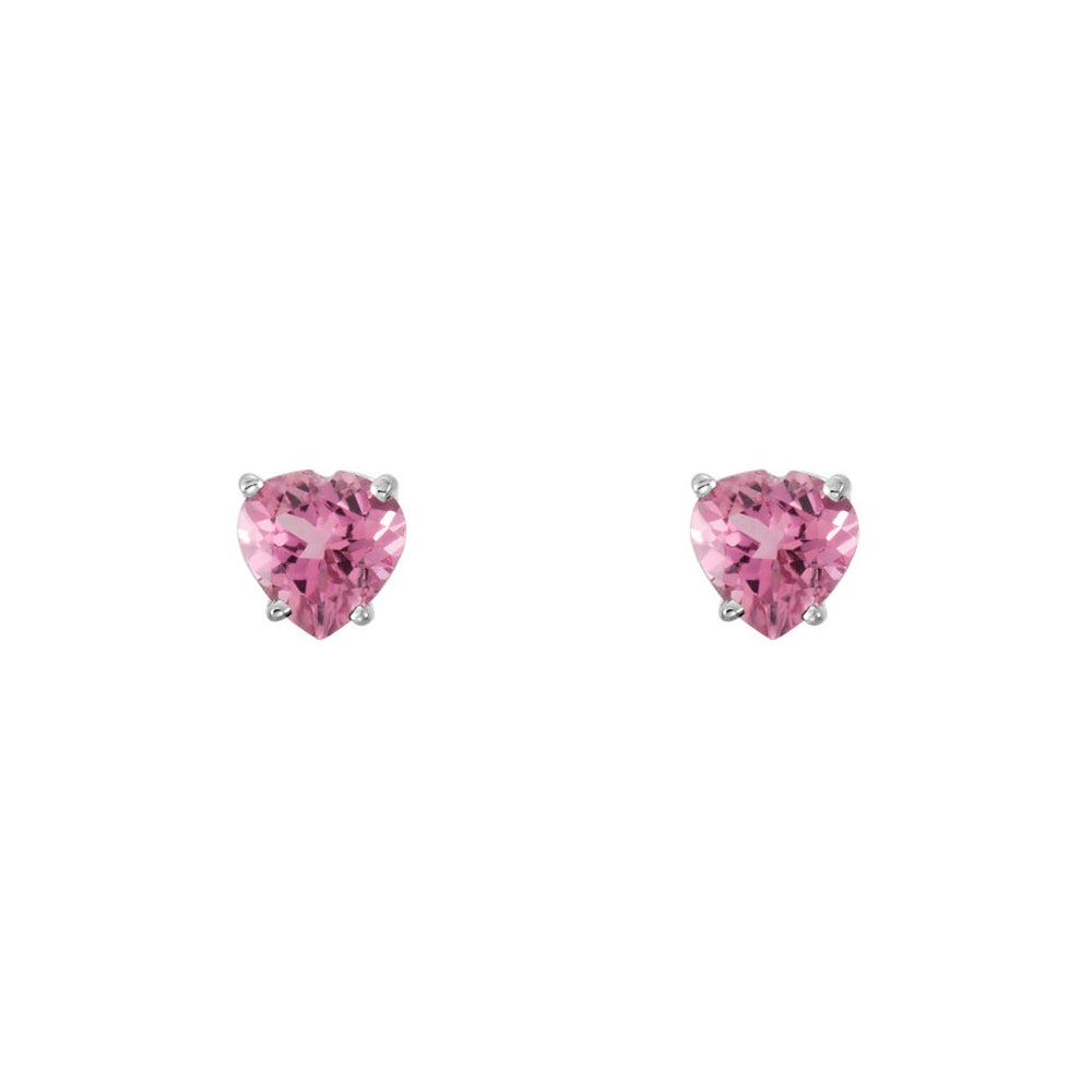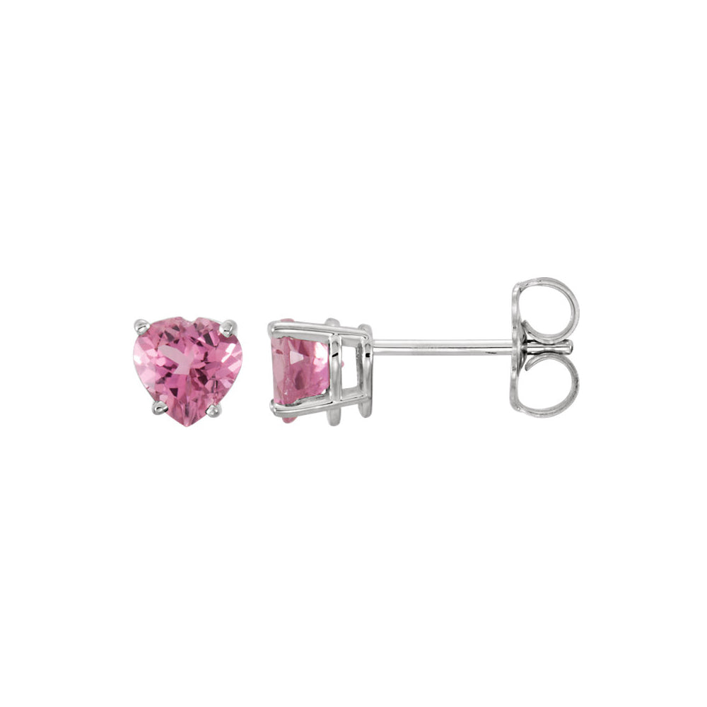 5mm Pink Tourmaline Heart Stud Earrings in 14k White Gold