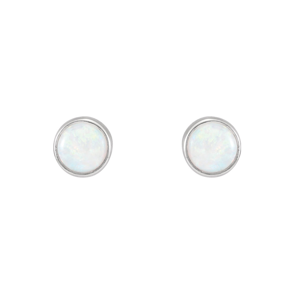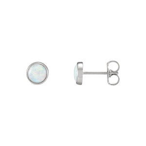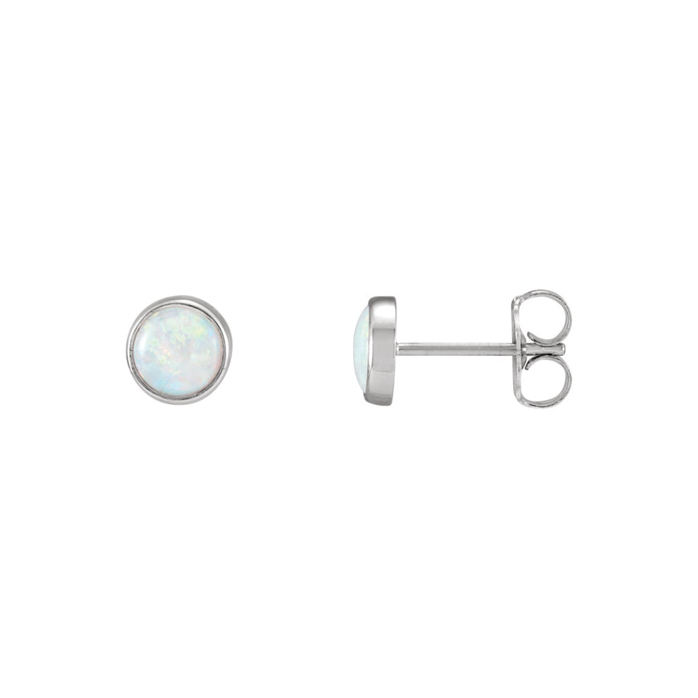 5mm White Opal Cabochon Stud Earrings in 14k White Gold - Black Bow Jewelry Company