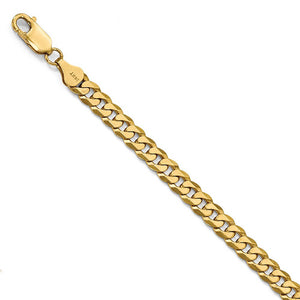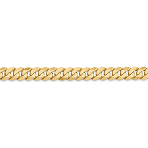 Flat curb links of 14k yellow gold enhanced with beveled edges form an attractive bracelet that looks great alone or layered with multiple chains to complete your desired style. It features solid links that measures 6.1mm in width by 7-inches in length and closes with a reliable lobster clasp.