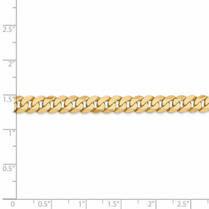 Flat curb links of 14k yellow gold enhanced with beveled edges form an attractive bracelet that looks great alone or layered with multiple chains to complete your desired style. It features solid links that measures 6.1mm in width by 9-inches in length and closes with a reliable lobster clasp.