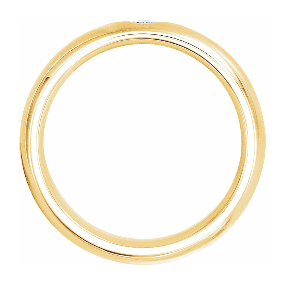 Category: *Style - Traditional 14K Yellow Gold 6.00 mm Band Design - 1 Stone Design - Domed Diamond - White Diamond Clarity: SI2-SI3 Diamond Color: G-H Diamond Shape: Round Diamond Weight: 0.1 Carats Engravable Finish - Polished Fit Type - Comfort Gemstone Mens Mens Diamond Size 10 Size 10.5 Size 11 Size 11.5 Size 12 Size 12.5 Size 13 Size 13.5 Size 14 Size 14.5 Size 15 Size 15.5 Size 16 Size 5 Size 5.5 Size 6 Size 6.5 Size 7 Size 7.5 Size 8 Size 8.5 Size 9 Size 9.5 Unisex Wedding Womens