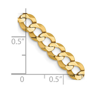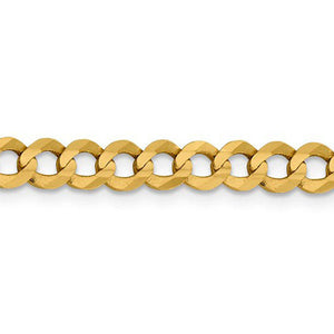 Ageless and classic, a curb or Cuban chain is one of the most durable single link styles. This women's polished bracelet is created from 14k yellow gold and features a lightweight, solid link, flat open curb chain design that is approximately 6mm in width by 8-inches in length and closes with lobster claw clasp.