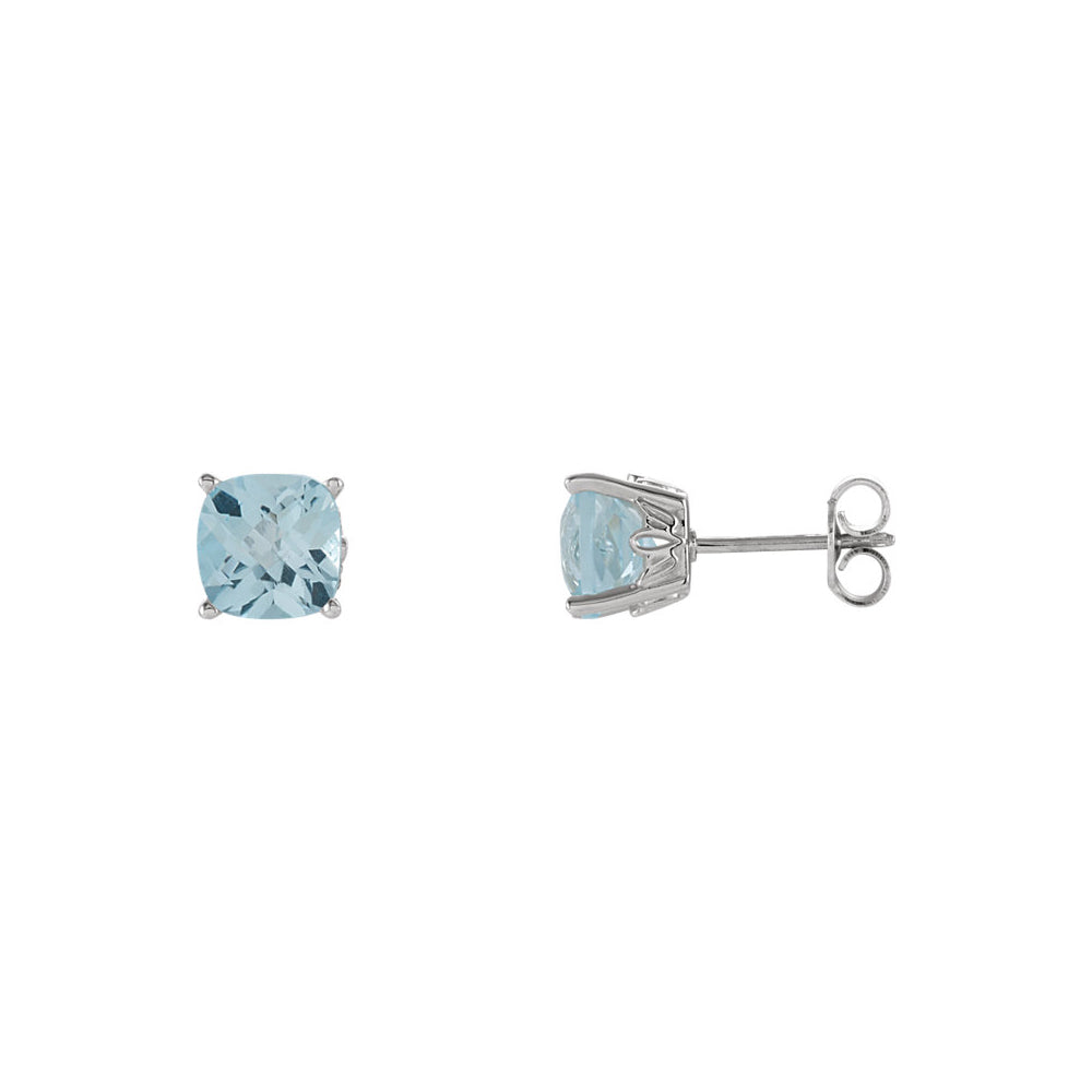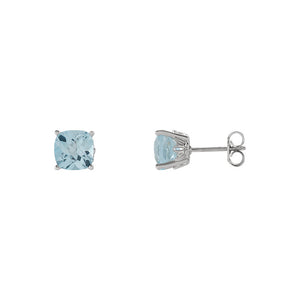 6mm Cushion Sky Blue Topaz Stud Earrings in 14k White Gold - Black Bow Jewelry Company