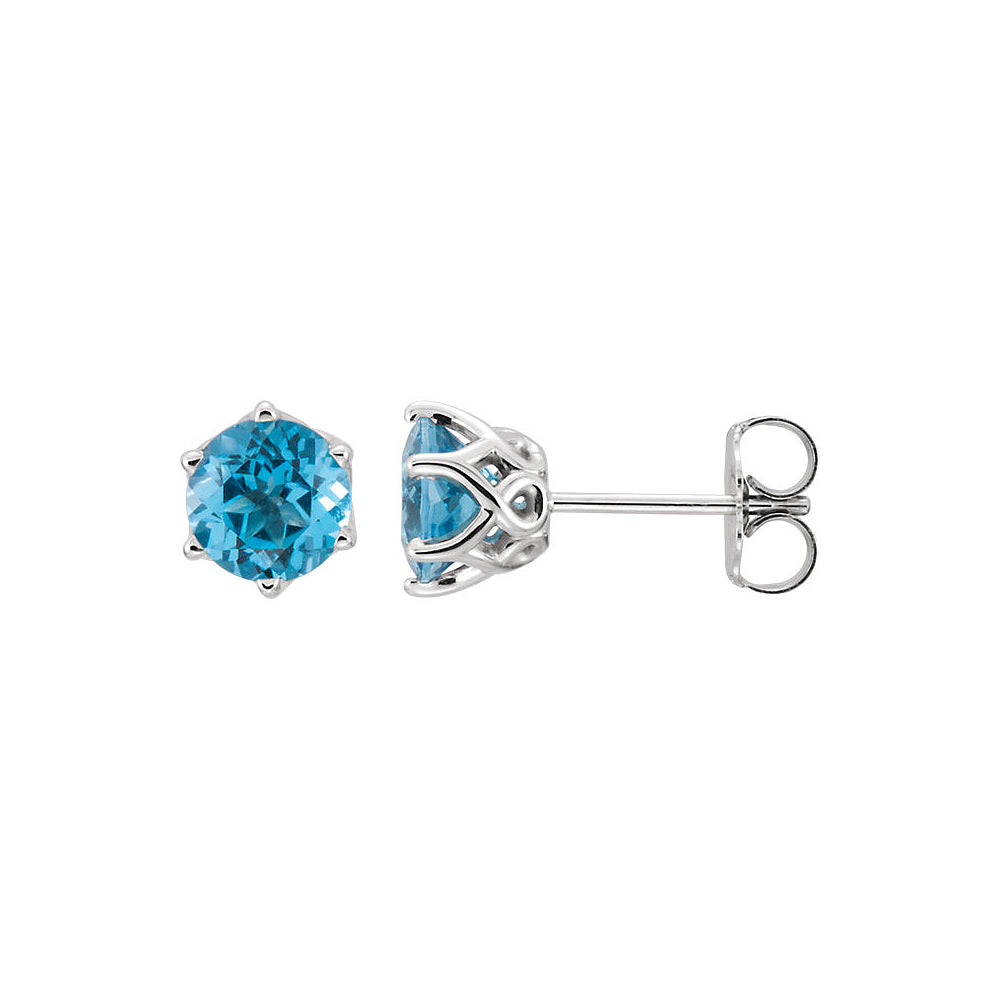 6mm Swiss Blue Topaz 6-Prong Stud Earrings in 14k White Gold - Black Bow Jewelry Company
