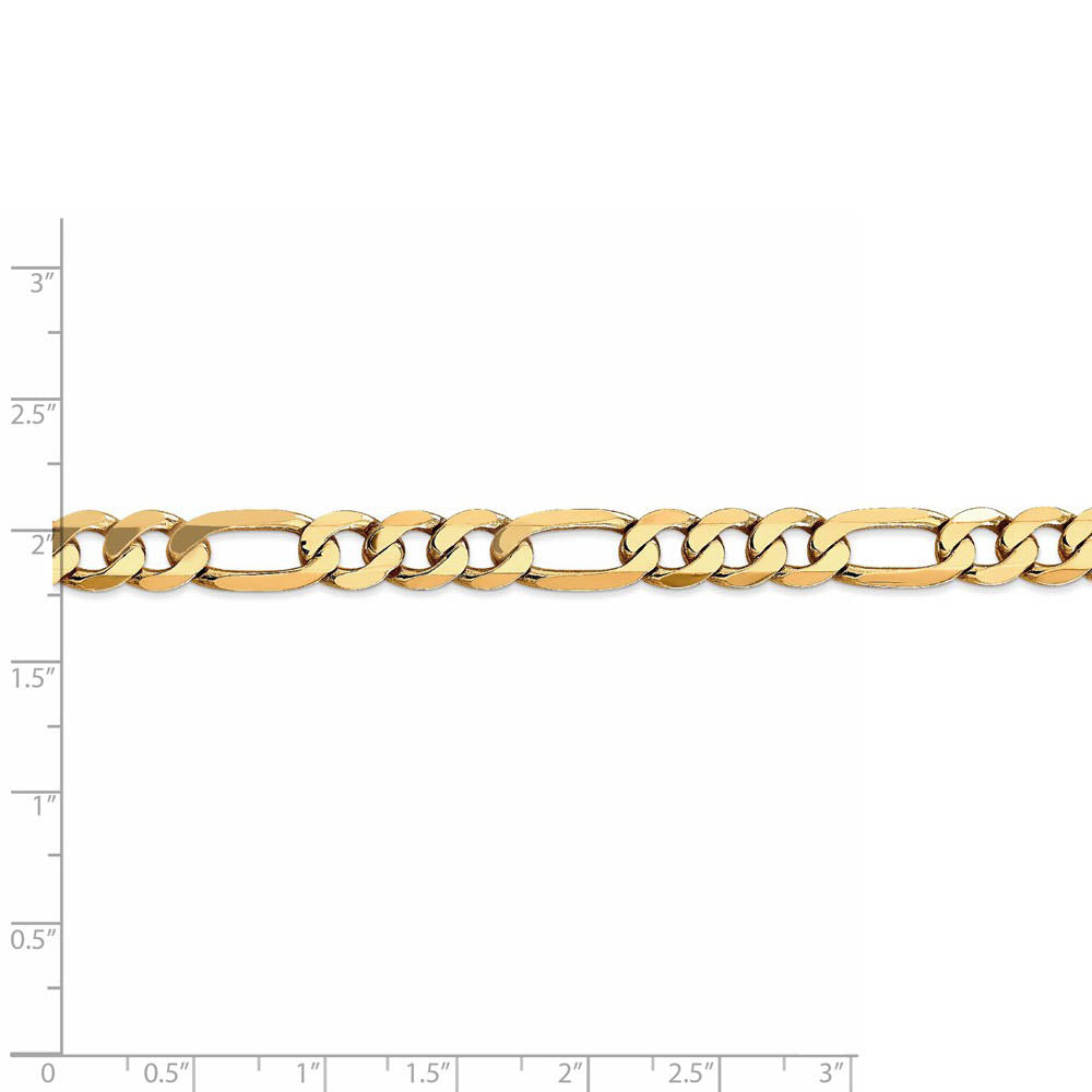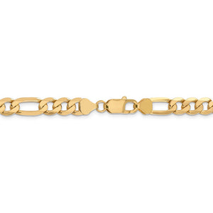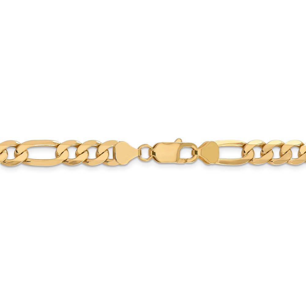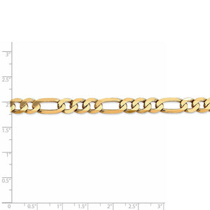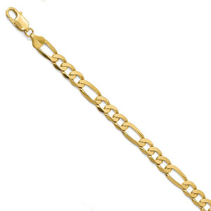 A set of three shorter links separated by one long oval link creates a sensational repeating pattern on this solid link, flat Figaro chain design. Measuring 7.5mm in width by 9-inches in length, this impressive polished 14k yellow gold bracelet finished with a lobster-claw clasp looks great with dress or casual wear.