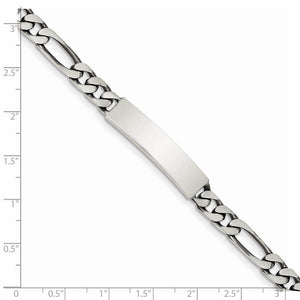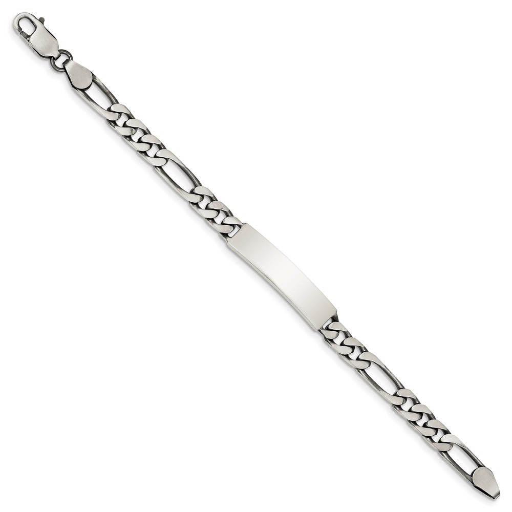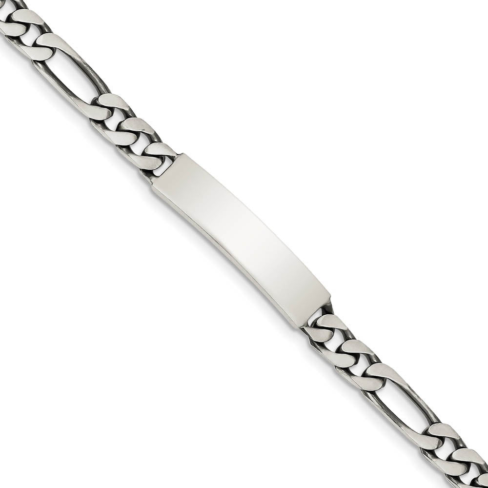 7mm Antiqued Sterling Silver Engravable Figaro Link I.D. Bracelet