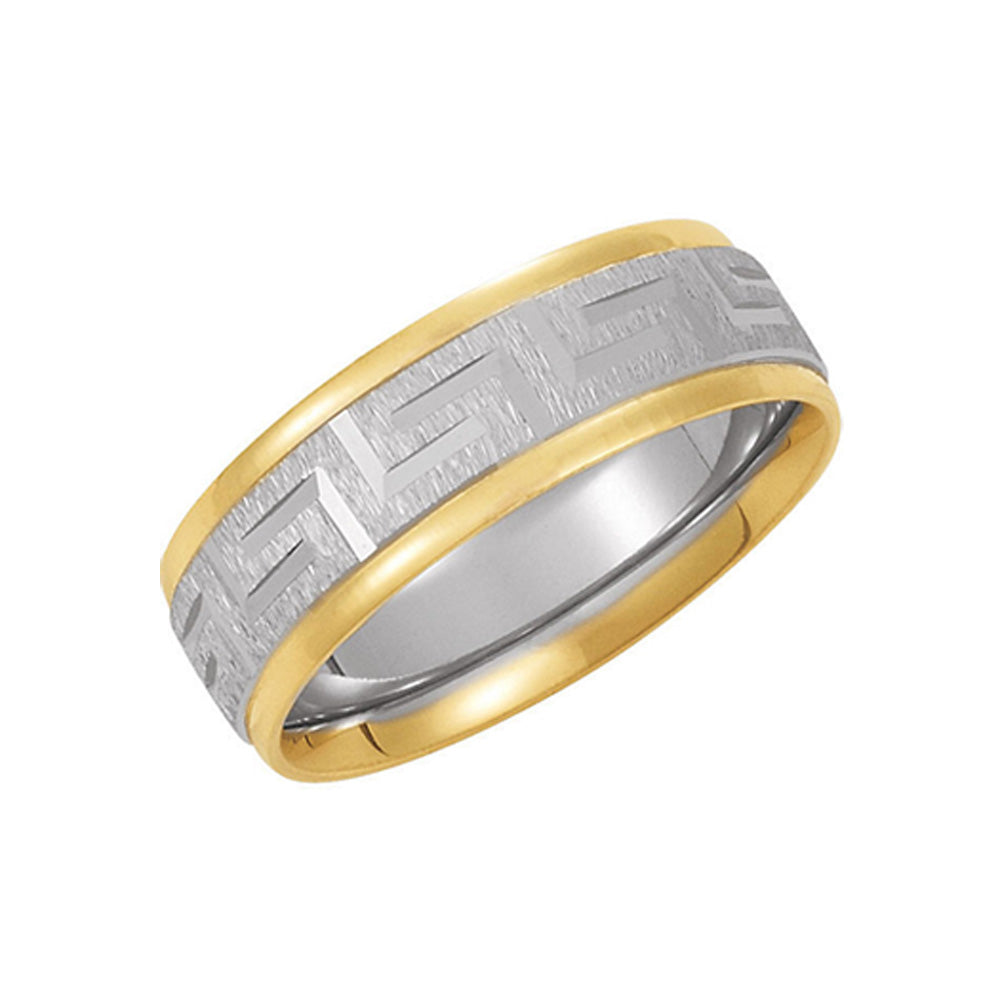7mm Two Tone Comfort Fit Greek Key Band in 14k Gold