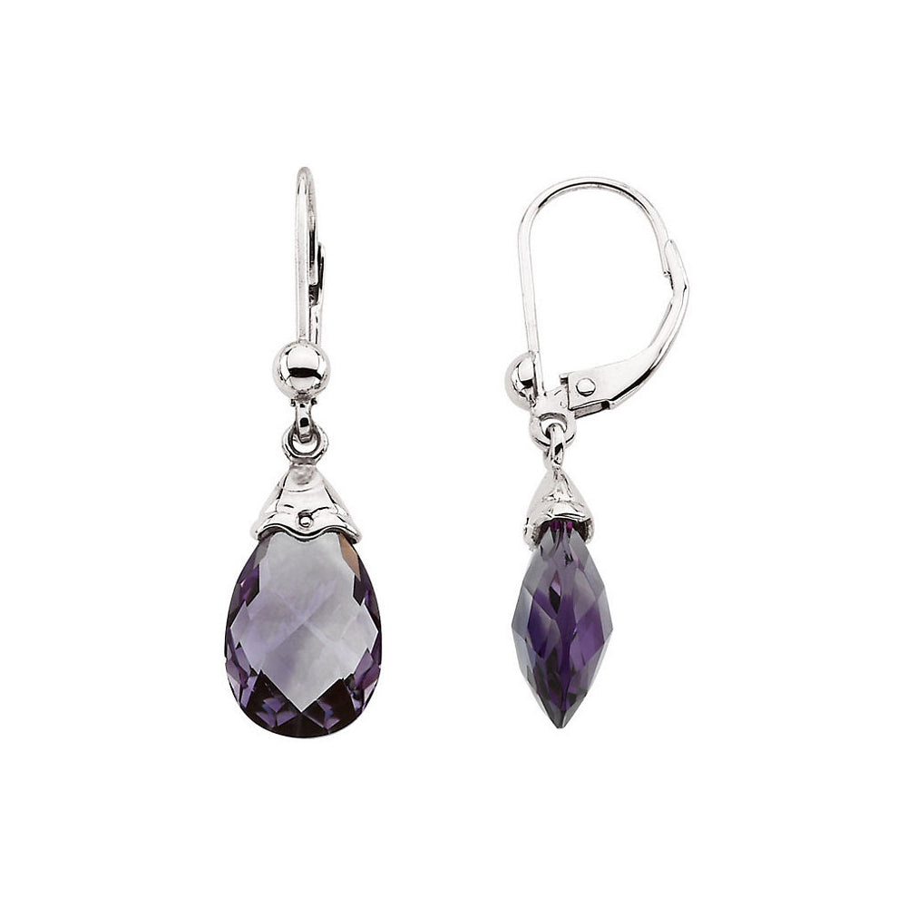 Amethyst Briolette & 14k White Gold Lever Back Earrings