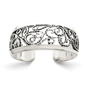 Antiqued Textured Ornate Toe Ring in Sterling Silver