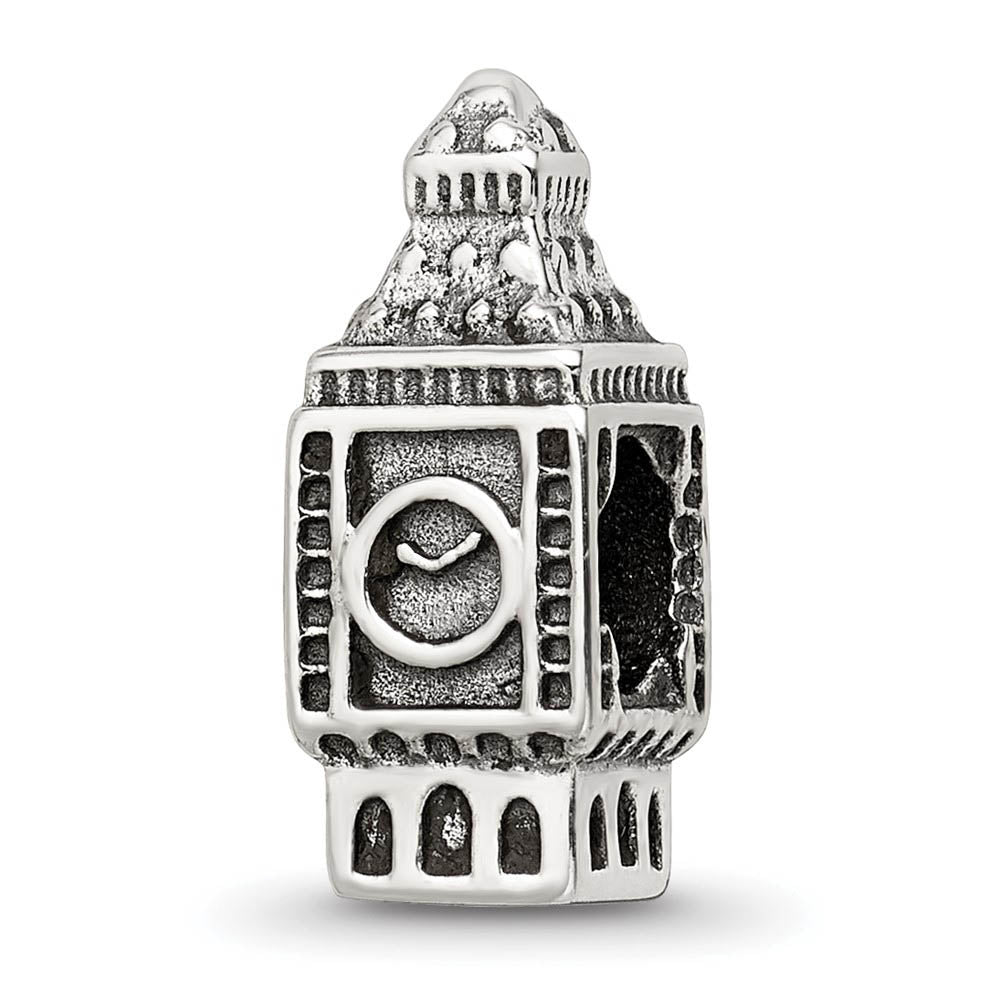 Big Ben Clock Tower Bead Charm in Antiqued Sterling Silver - Black Bow Jewelry Company