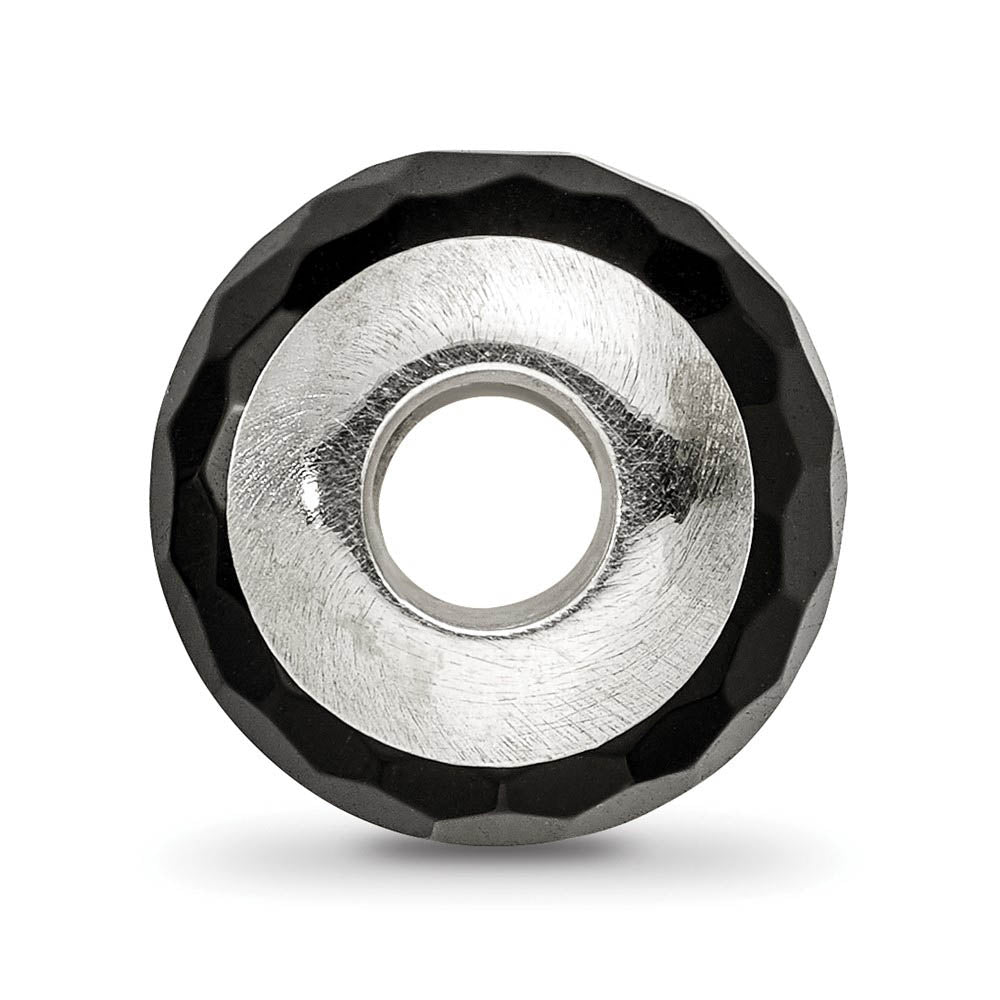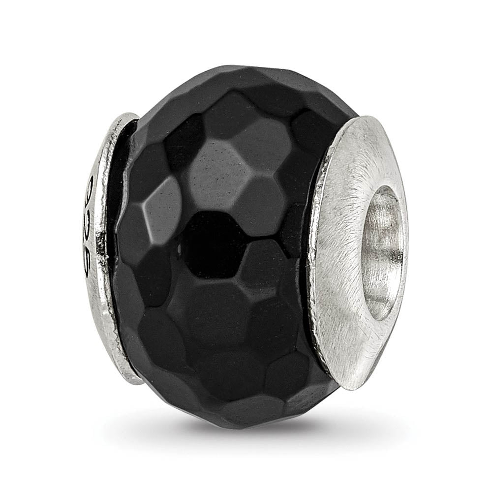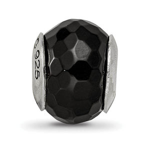 Black Agate Stone & Sterling Silver Bead Charm, 13mm