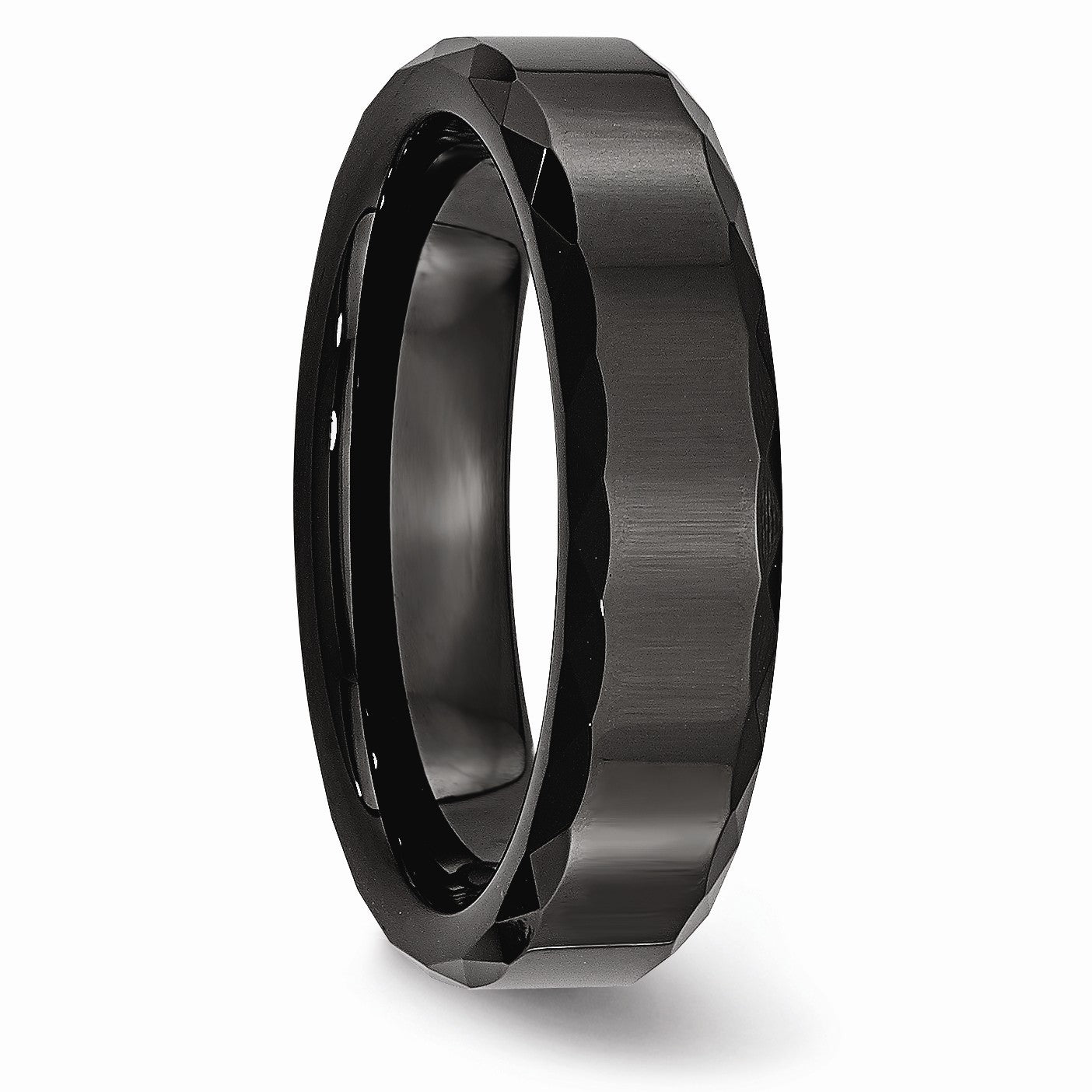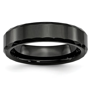 Ceramic is a high-tech, inorganic, non-metallic material that has the hardness and durability of Tungsten with the look and feel of porcelain. Because it is also fade resistant and hypoallergenic, it is perfect for everyday wear. Our 6mm, comfort fit band features a flat polished top with faceted edges and a high polished finish.