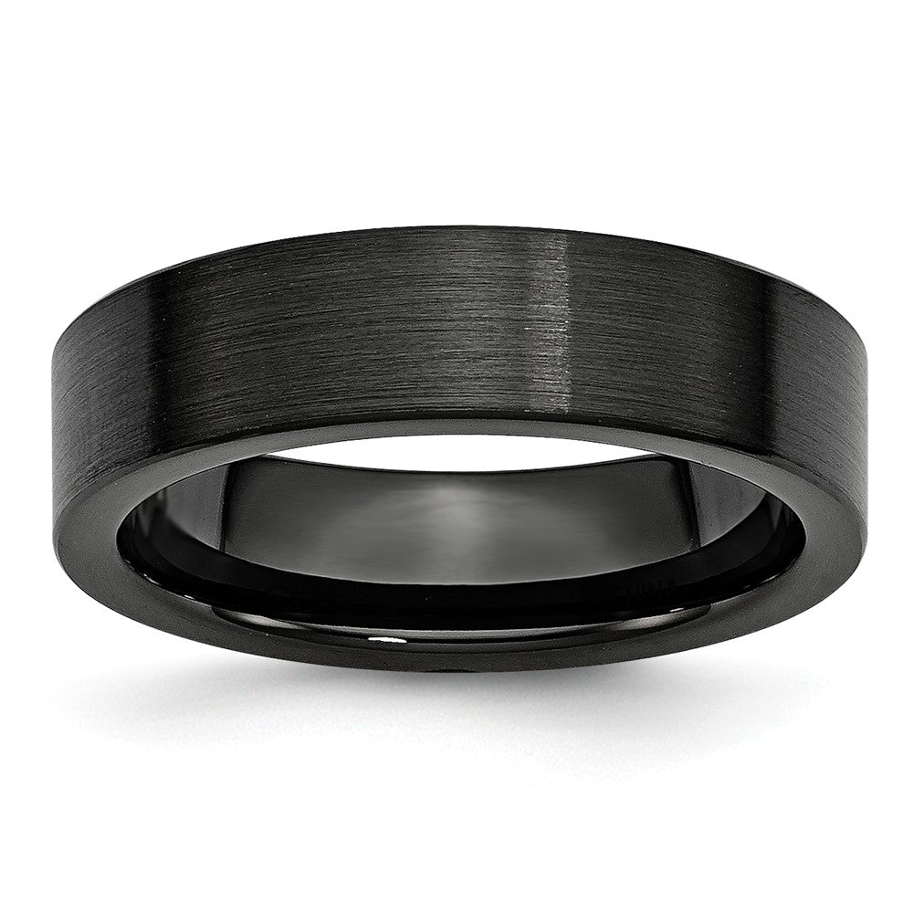 Black Ceramic, 6mm Flat Brushed Comfort Fit Band - Black Bow Jewelry Company
