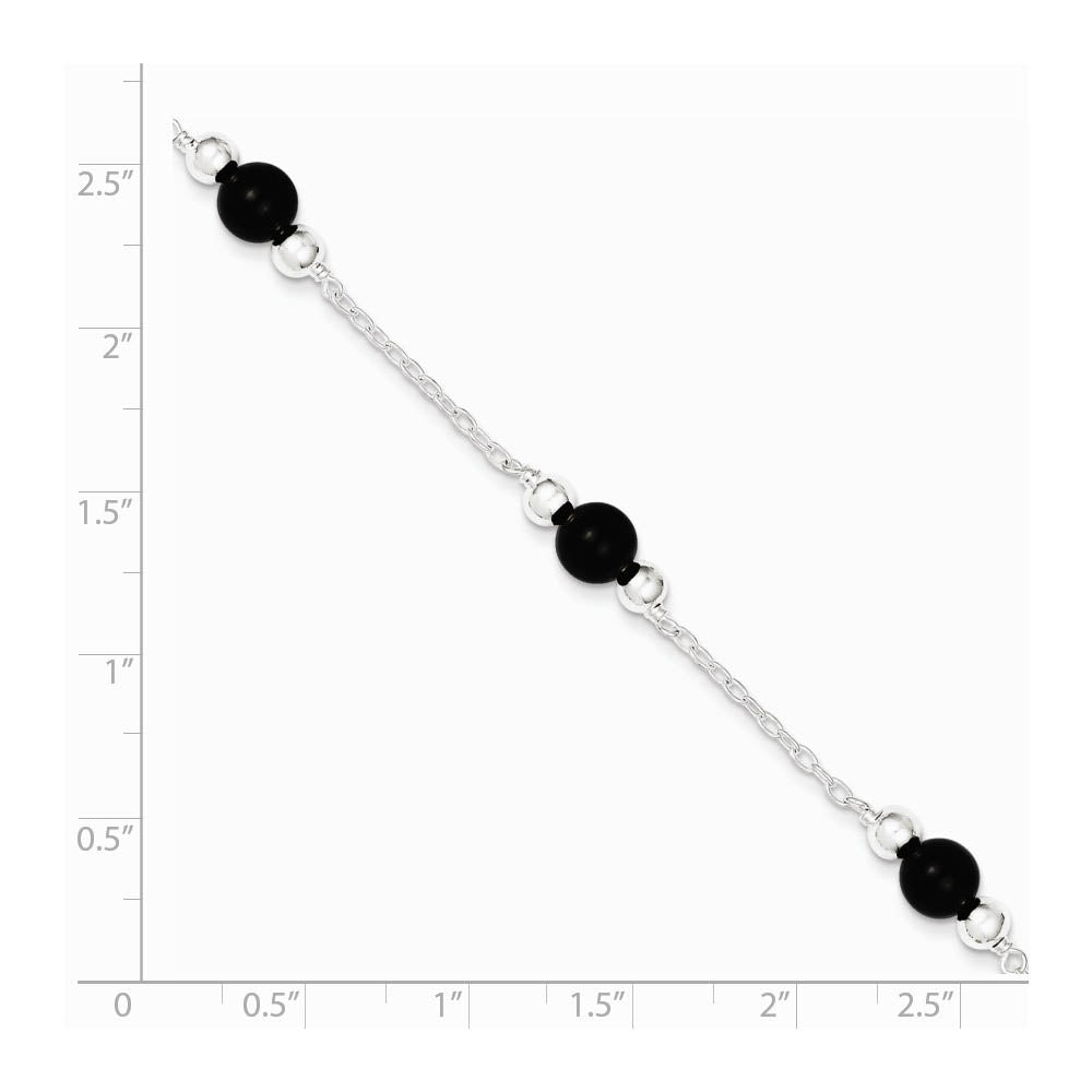Polished 6mm spheres of black onyx punctuated by gleaming silver balls on this stunning 9-inch ankle bracelet will subtly enhance your look with its sleek and bold style. Created from tarnish resistant rhodium-plated sterling silver and fastens to your ankle with a secure, spring ring clasp.