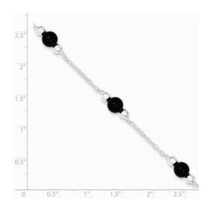 Black Onyx in Rhodium-Plated Sterling Silver, Beaded Anklet, 9 Inch - Black Bow Jewelry Company