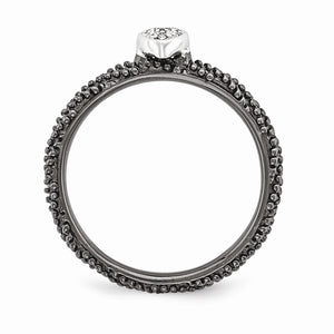 Black Plated Sterling Silver .02 Ctw Diamond 5mm Heart Stackable Ring