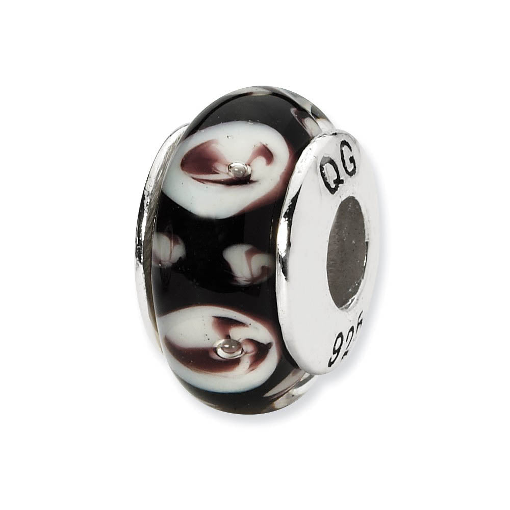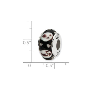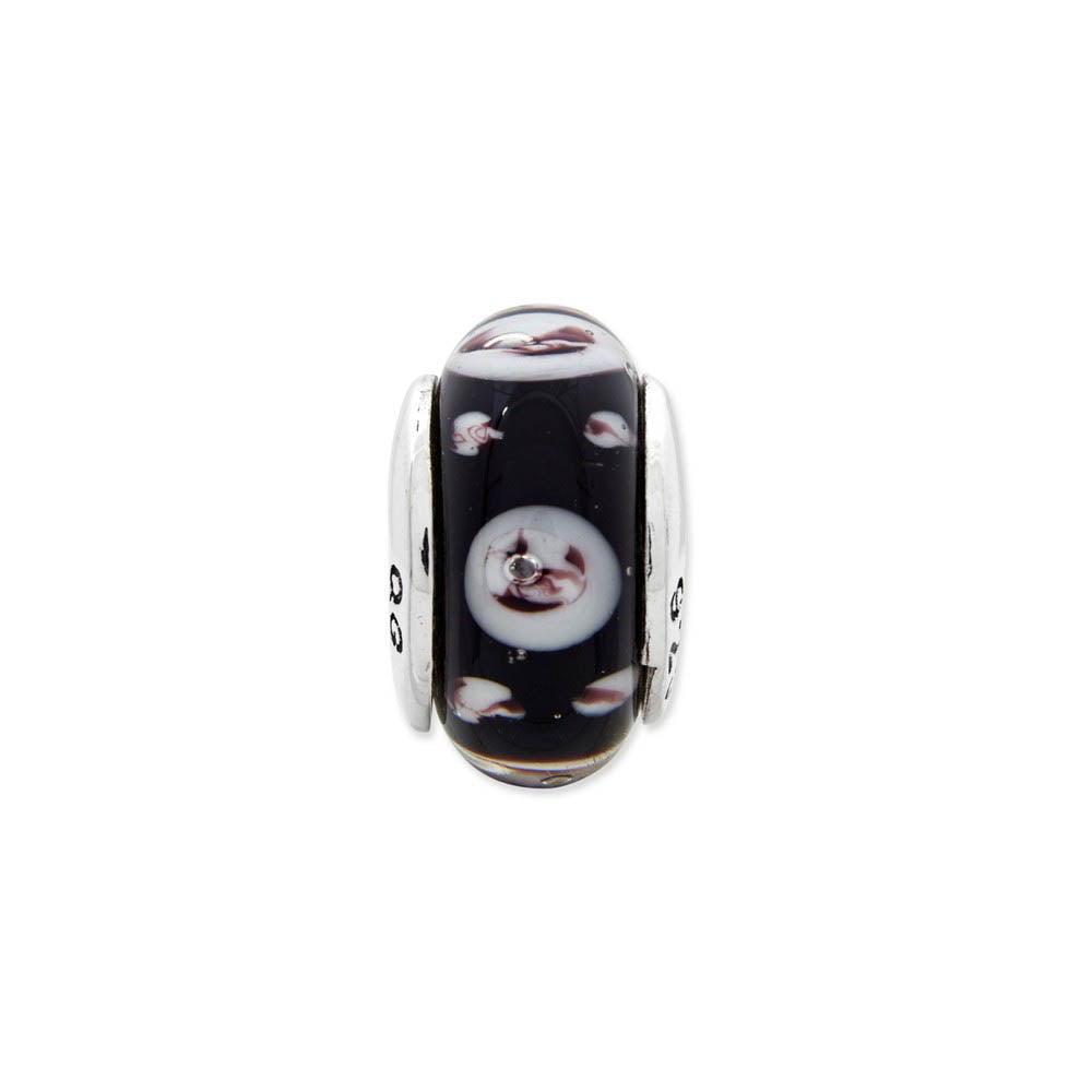 Black, Purple Floral Glass & Sterling Silver Bead Charm, 13mm - Black Bow Jewelry Company