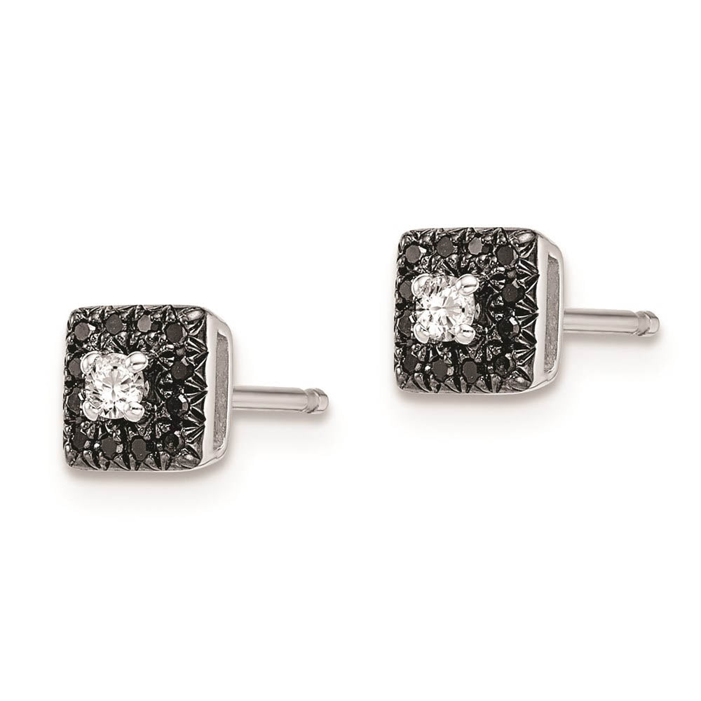 Black & White Diamond 6mm Square Post Earrings in Sterling Silver - Black Bow Jewelry Company