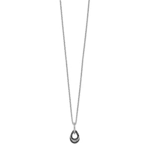 Opposites do attract! Like the sparkle of the stars in the dark night sky, this black and white diamond triple teardrop necklace matches that beauty. It is designed from tarnish resistant rhodium plated sterling silver and prong set with H-I natural white and black heat-treated, I2-I3 clarity diamonds totaling 1/4 carat. The tiny pendant is approximately 9mm (3/8 inch) in width by 17mm (5/8 inch) in length, which includes the bail. The 1mm cable chain is finished with a lobster clasp and 2-inch extension that makes it adjustable from 18 to 20 inches in length. This item is backordered. Please allow 7-10 business days for delivery