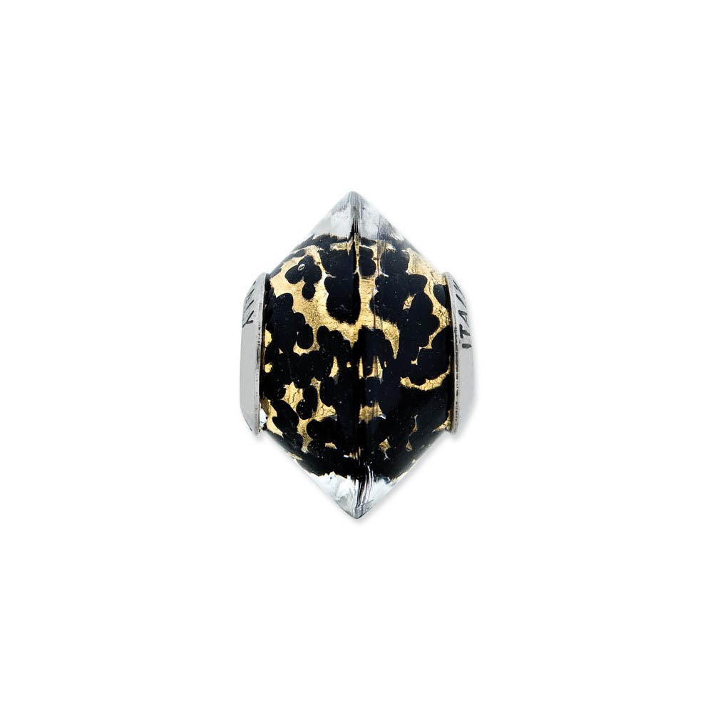 Black/Yellow Murano Glass & Sterling Silver Bead Charm, 17mm