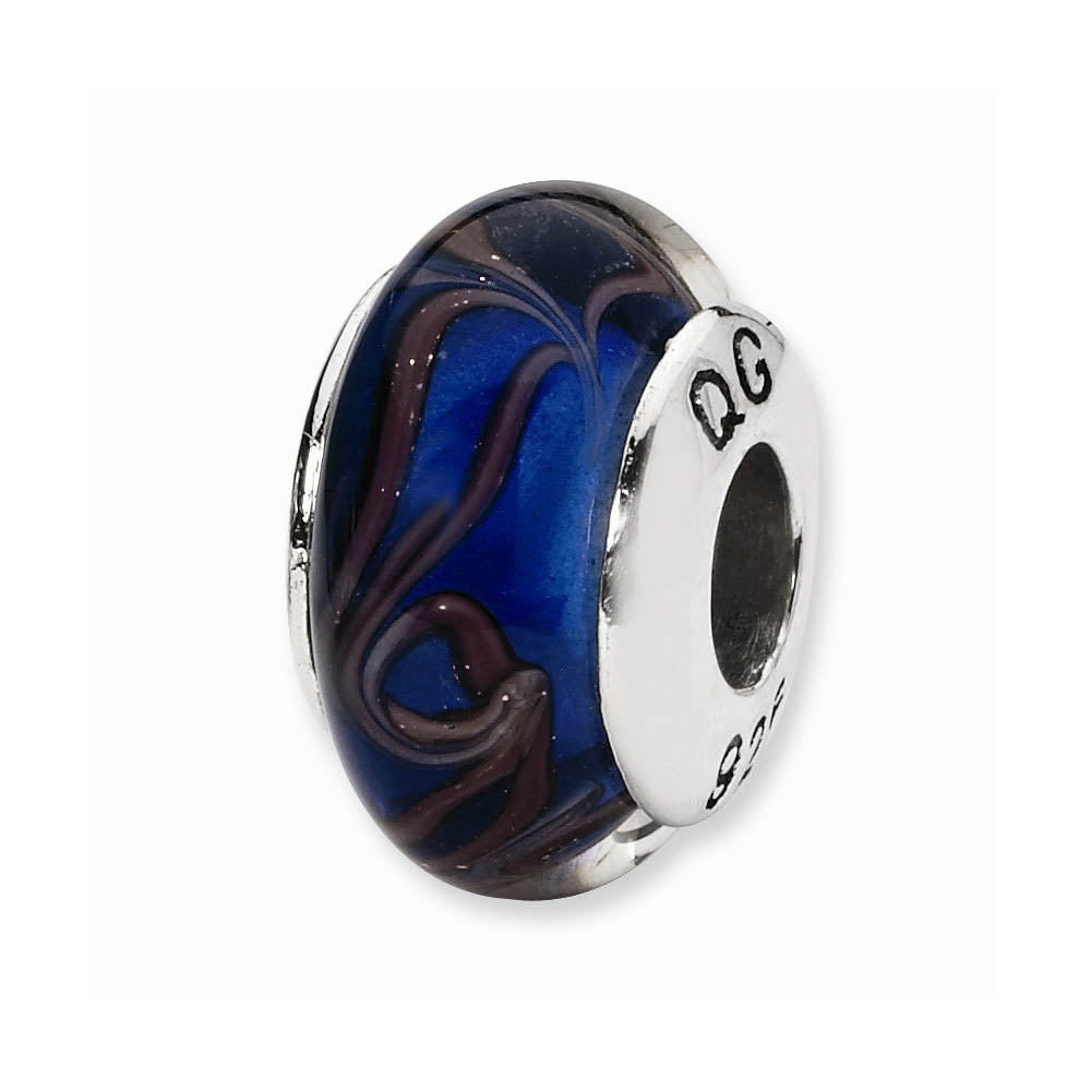 Blue, Brown Swirl Hand-Blown Glass & Sterling Silver Bead Charm, 13mm - Black Bow Jewelry Company