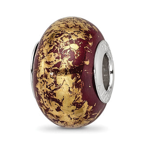 Brown with Gold Foil Ceramic and Sterling Silver Bead Charm