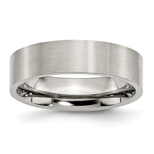 Brushed Stainless Steel, 6mm Unisex Flat Comfort Fit Band