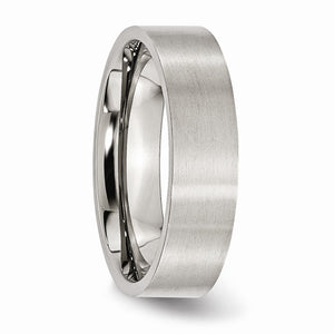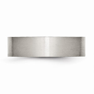 Go from formal to informal with a traditional stainless steel ring that measures 6mm wide and features a trendy, satin finish. Available in whole and half sizes 6-13.