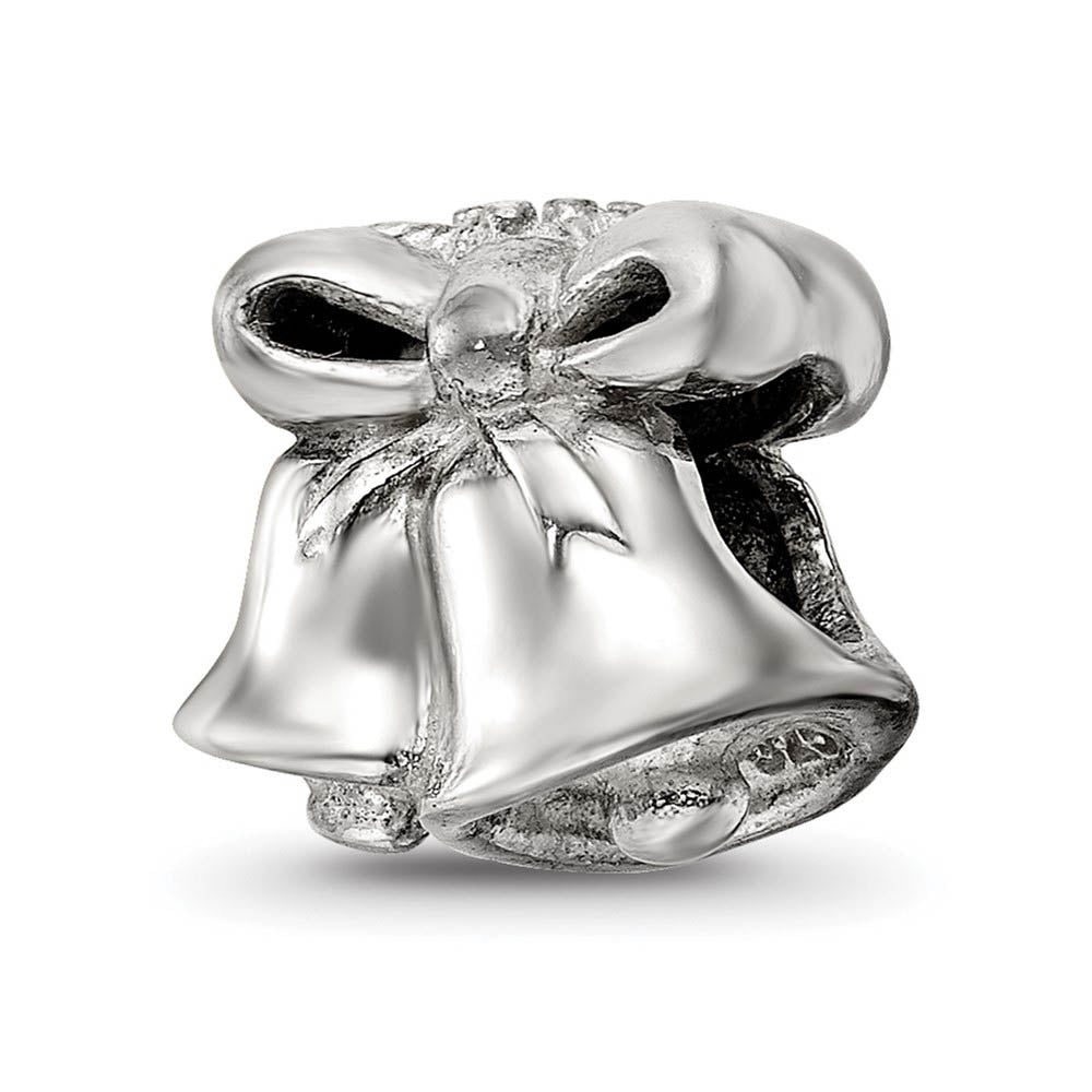 Celebrate the magic of Christmas with this sterling silver charm featuring a classic double bell and ribbon design. It is approximately 10mm in width by 10mm in length and has a 4mm core that is interchangeable as well as compatible with Reflections and other popular 3mm width bead style bracelets and necklaces.
