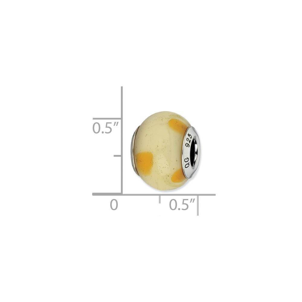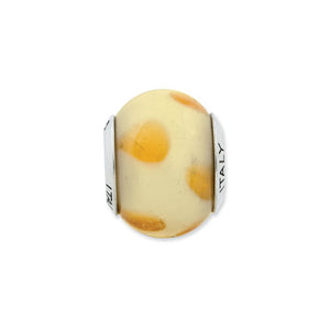 Cream with Dots Italian Murano & Sterling Silver Bead Charm, 15mm