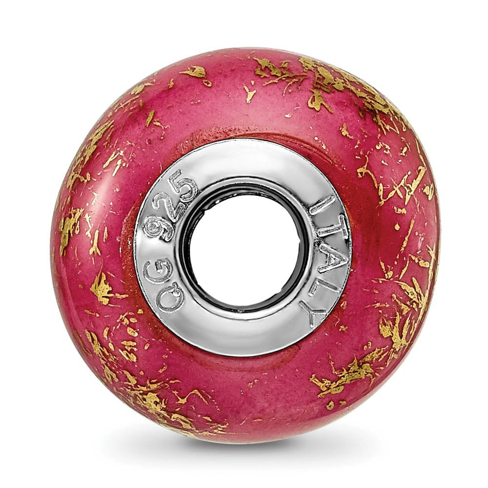 Dark Pink w/Gold Foil Ceramic & Sterling Silver Bead Charm, 14mm - Black Bow Jewelry Company