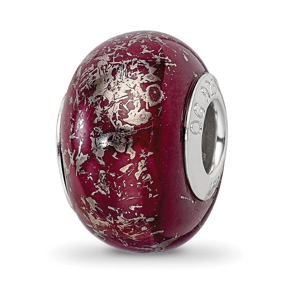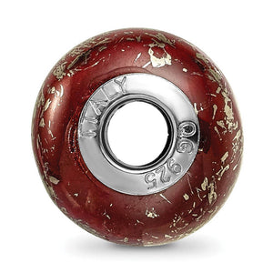 Dark Red w/Platinum Foil Ceramic & Sterling Silver Bead Charm, 14mm