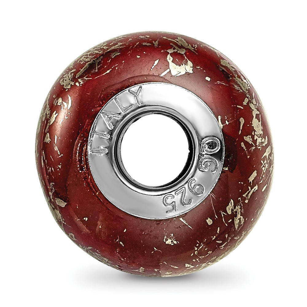 Dark Red w/Platinum Foil Ceramic & Sterling Silver Bead Charm, 14mm - Black Bow Jewelry Company