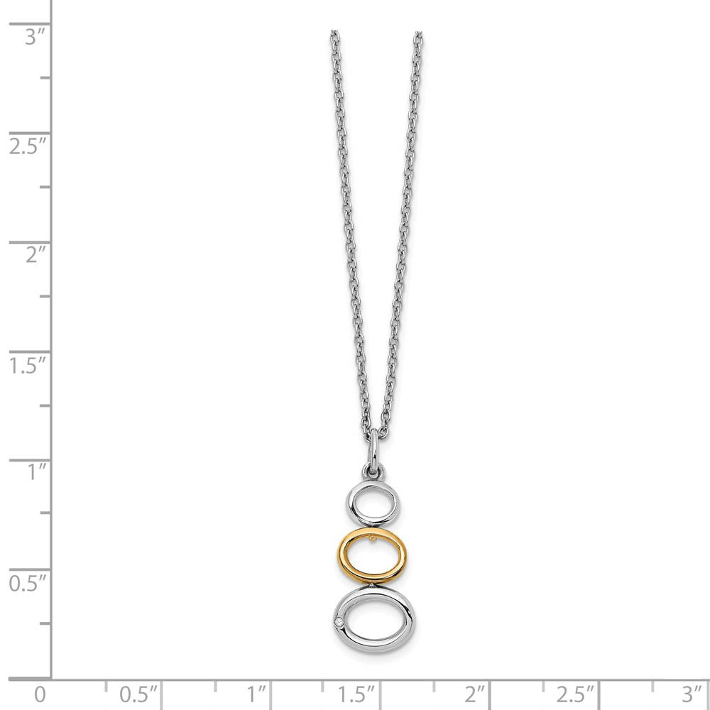 A simplistic design with timeless style featuring a diamond and gold tone accented pendant with an adjustable chain made from tarnish resistant, rhodium plated sterling silver. The two-tone pendant is approximately 10mm (3/8 inch) in width by 26mm (1 inch) in length, which includes the chain slide. It comes ready to wear on 1mm width, 18 inch long cable chain finished with a lobster clasp and 2-inch extension for flexibility. The natural 1/2 point carat diamond is I2 in clarity and H-I in color.