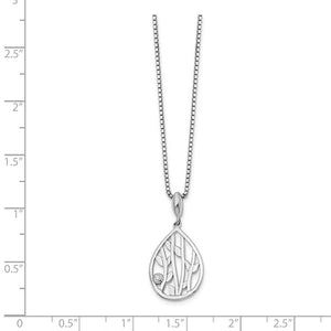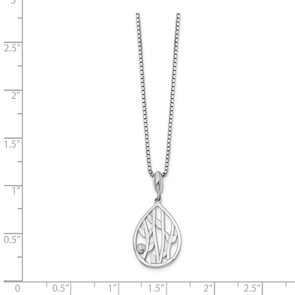 Diamond Leaf Teardrop Necklace in Rhodium Plated Silver, 18-20 Inch - Black Bow Jewelry Company