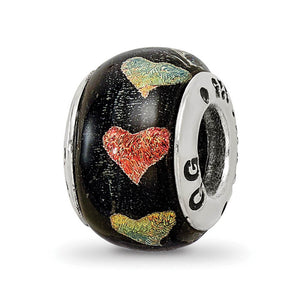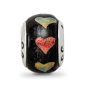 Dichroic Glass Sterling Silver Orange Green Hearts Bead Charm, 13mm - Black Bow Jewelry Company