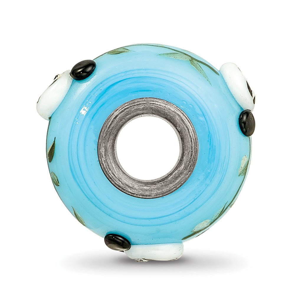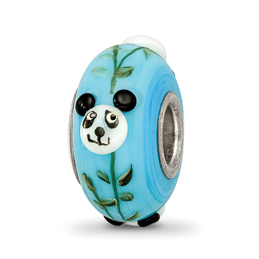 Fenton Blue Hand Painted Panda Face Glass & Sterling Silver Bead Charm - Black Bow Jewelry Company