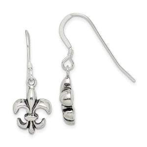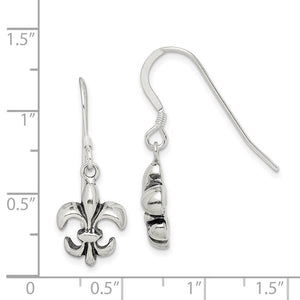 Fleur De Lis Dangle Earrings in Antiqued Sterling Silver