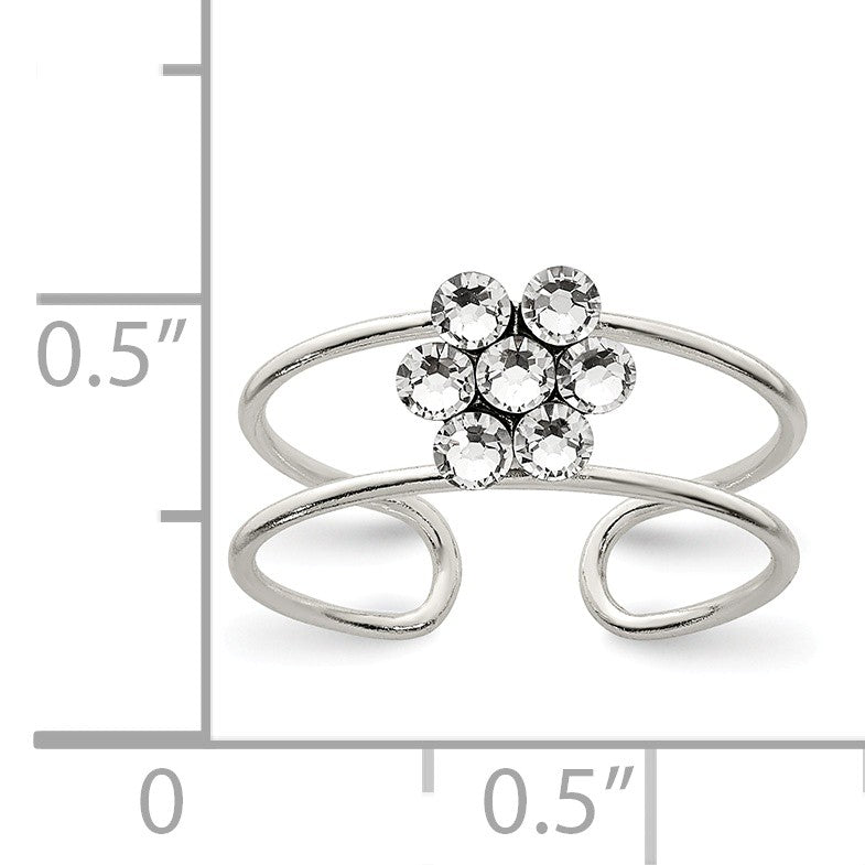 Flower Toe Ring in Sterling Silver and Cubic Zirconia