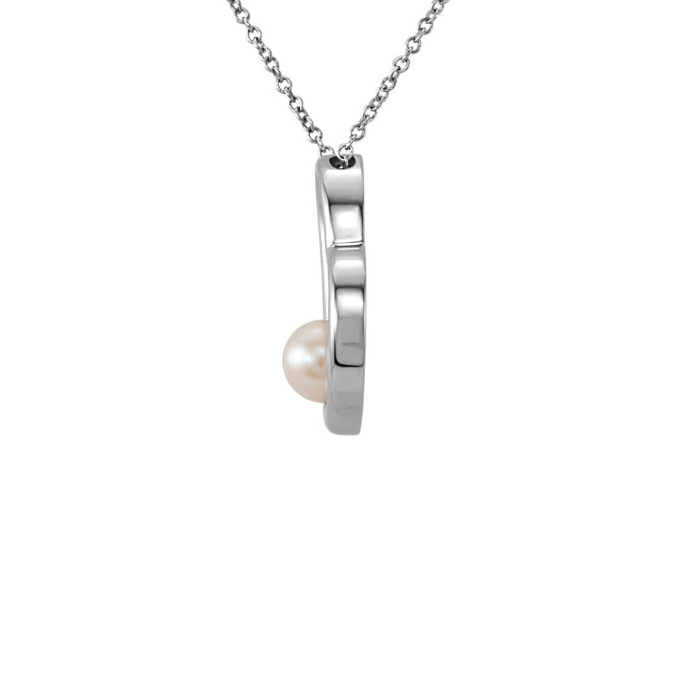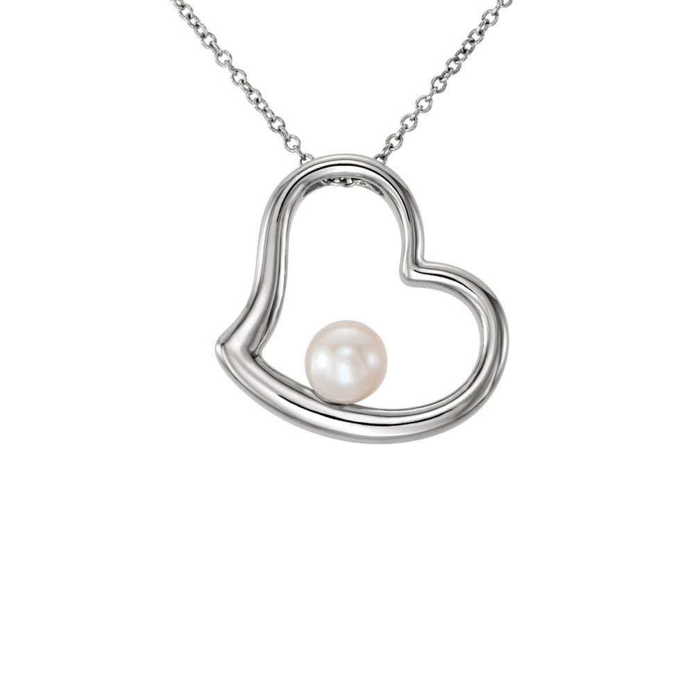 Freshwater Cultured Pearl Heart Necklace in 14k White Gold, 18 Inch
