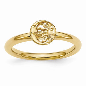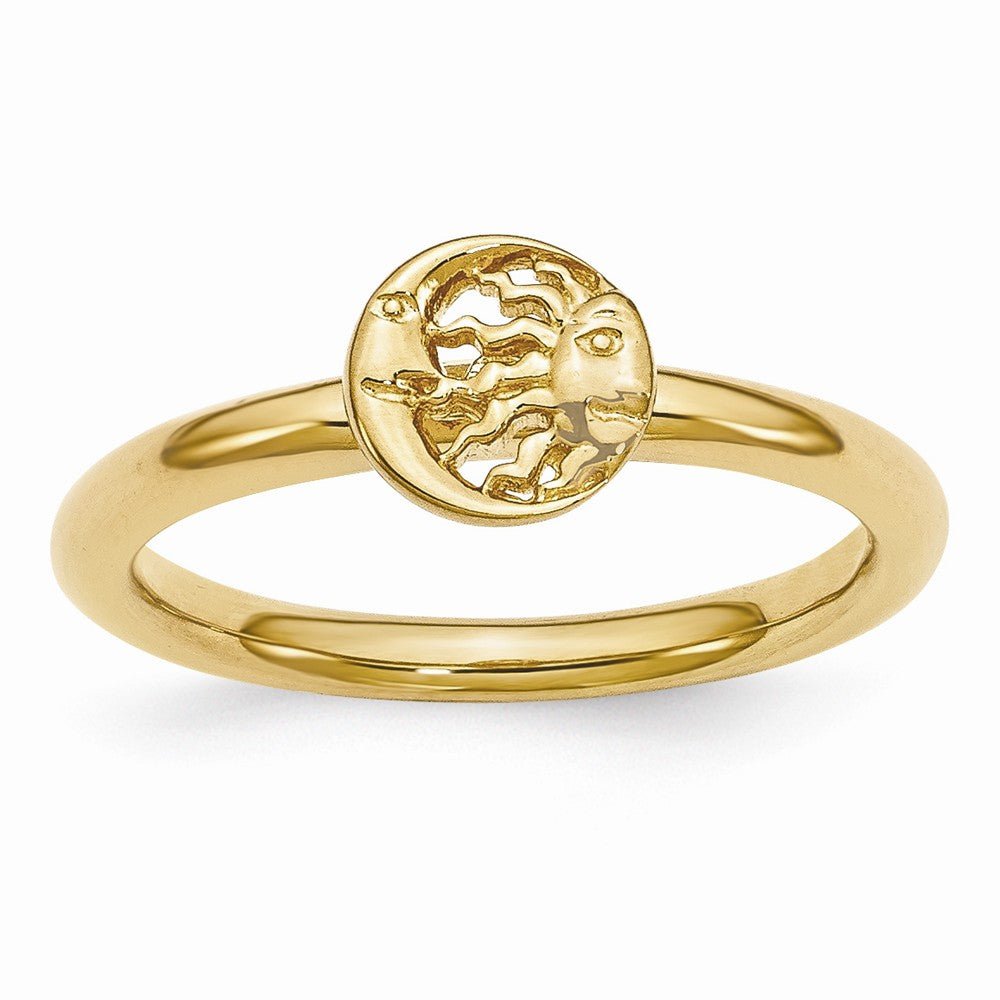 Gold Tone Plated Sterling Silver Stackable 7mm Sun/Moon Ring - Black Bow Jewelry Company