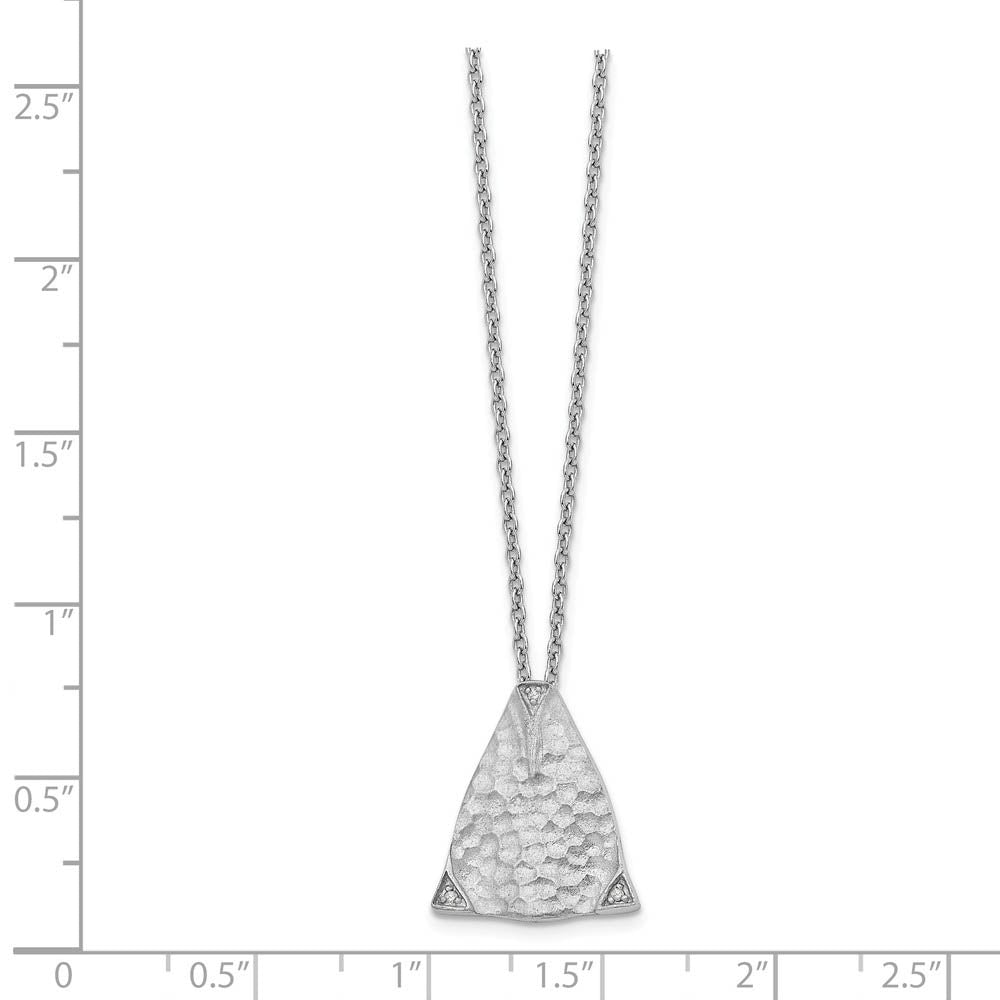 Hammered Triangle Diamond Necklace, Rhodium Plated Silver, 18-20 Inch