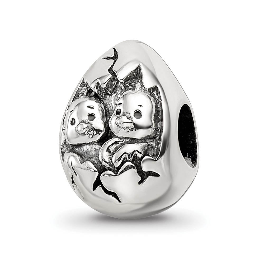 Happy Easter Hatching Chicks Bead Charm in Antiqued Sterling Silver - Black Bow Jewelry Company