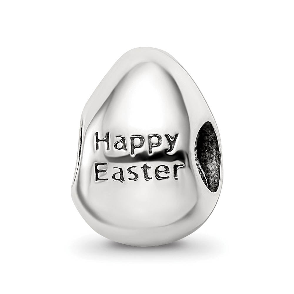 Celebrate the magic of Easter with this sterling silver charm featuring two chicks on the front and Happy Easter message on the back. It is approximately 9mm in width by 12mm in length and has a 4mm core that is interchangeable as well as compatible with Reflections and other popular 3mm width bead style bracelets and necklaces.
