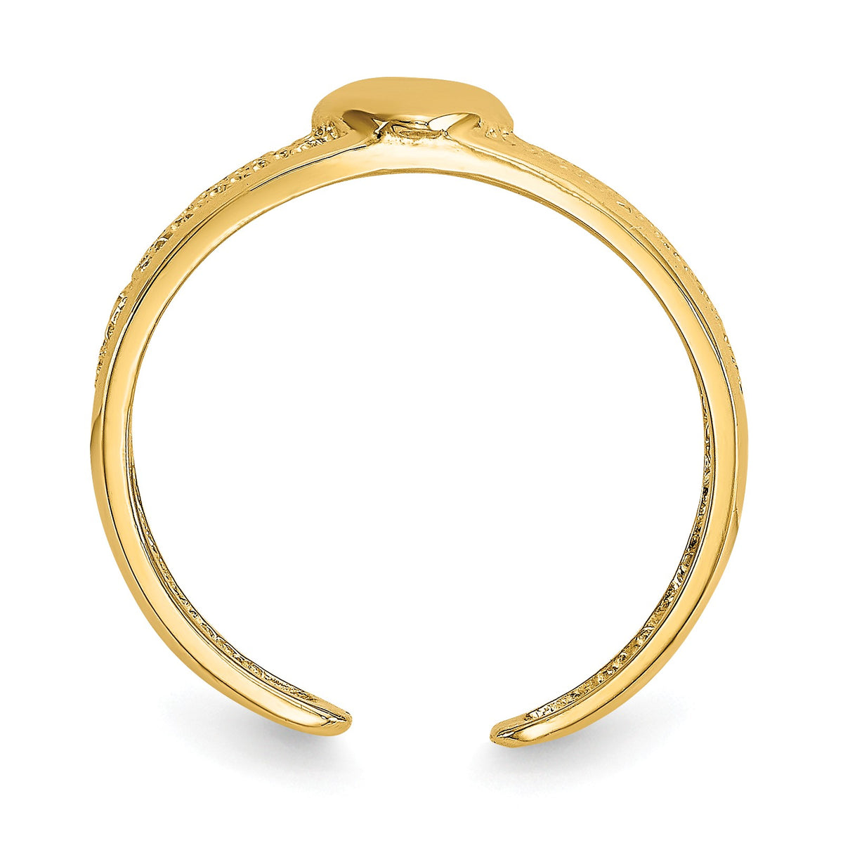 This beautiful, 4mm heart toe ring was made in the USA from 14k yellow gold. It adjusts to the desired size with ease and has a textured, polished finish.